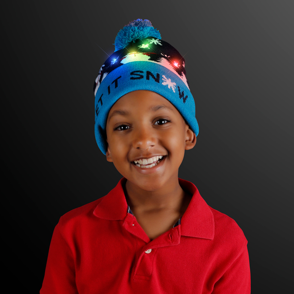Stay warm and festive this holiday season with this blinking snowman LED Beanie. The flashing, color changing LEDs are activated with a hidden switch in the back of the hat. This hat also comes in alternate colors and designs to mix things up. Includes two replaceable batteries.