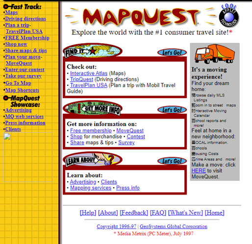 Figure 2: MapQuest – This version was live in December of 1997
