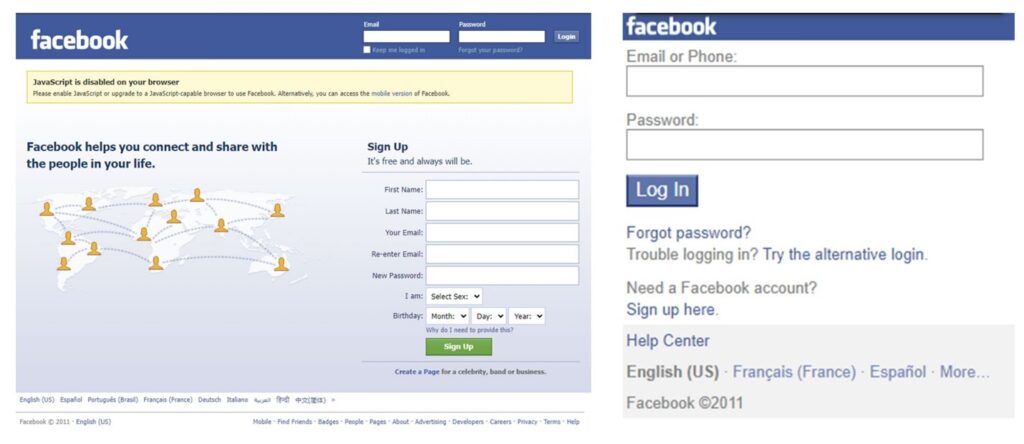 Figure 5: Facebook Desktop and mobile websites circa 2011.