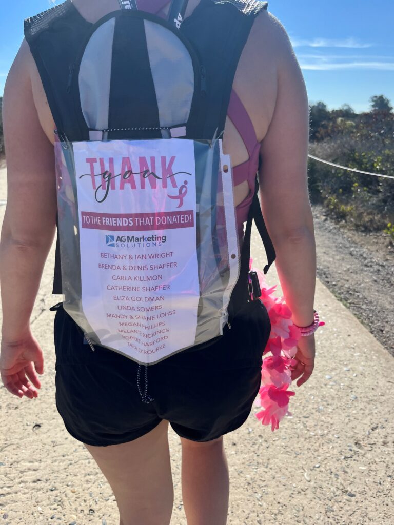 I walked 60 miles over 3-days with 1,700 walkers and 350 crew volunteers. On day one, despite having to wake up at 4:00 AM, everyone you encounter has a happy attitude and an encouraging smile. We all cheered as our fellow walkers, who were breast cancer survivors, led us out onto the route. Seeing my mother and aunt walking amongst that pack was emotional. Over the next three days, the community showed up to cheer the walkers on. There was not a single mile where we didn’t have at least one person encouraging us. I met so many amazing people who have been doing these walks for years. On day two, I walked about 3 miles with a man who does the entire 60 miles in his full fireman suit, and this was his 4th walk that year. He got my mother, as a survivor, to sign his oxygen tank. At the closing ceremonies, we all raised 1 shoe in the air to salute the survivors as they were the last to walk in!